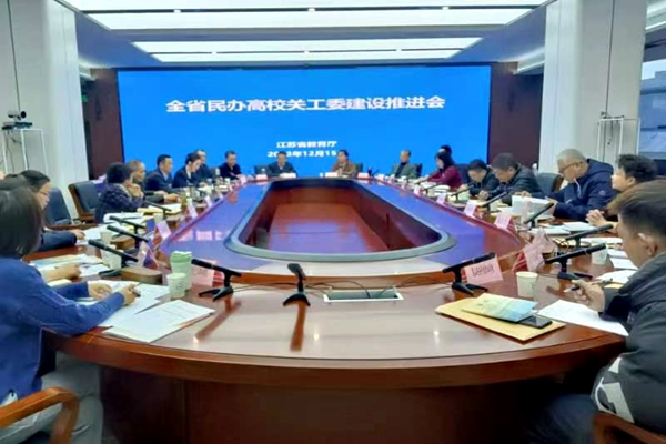 12月15日,江苏省教育系统关工委召开全省民办高校关工委建设推进会。省教育厅一级巡视员徐子敏,省教育系统关工委主任王煌,省教育厅离退休干部处处长、关工委秘书长姚志化,副秘书长张志民、李坤等省教育系统关工委秘书处全体同志,全省民办高校负责人等60余人参加会议。beat365官网关工委常务副主任郭彬,秘书长杨业琴参会。郭彬同志作交流发言。