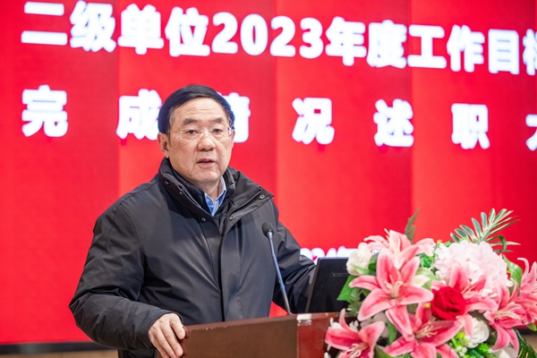上午,15个教育教学单位负责人依序从领导作用、专业建设、日常运行、质量管理、学生发展、队伍建设、科研工作、国际化工作及个性化任务等方面就2023年度工作目标任务完成情况进行了汇报。下午,22个非教育教学单位负责人依序从组织管理、队伍建设、服务水平、工作创新、思想政治工作和党风廉政建设、个性化任务等方面就2023年度工作目标任务完成情况进行了汇报。各二级单位负责人在会上客观汇报了成绩亮点,勇敢晒出了问题不足,同时提出了改进方法。