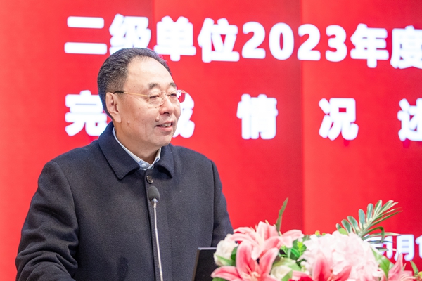 理事长、党委书记封超年讲话。他表示,各单位各部门对照2023年度工作目标,认真回顾一年的工作,总结取得的成绩,客观深入分析存在的主要问题,明确提出了今后的工作思路。他强调,在大家的共同努力下,按照上级要求,针对学校实际,较好地完成了党的建设和思想政治工作、人才培养、队伍建设、学科专业建设、条件保障、科研和社会服务等各方面的任务,学校保持了稳定发展的良好态势,是全校广大师生员工共同努力的结果,成绩来之不易。他指出,各学院之间由于学科专业类型差异、部门之间由于职能差异,各有特点,但克服困难、勇于担当、奋力作为的精神是一致的。他表示,在述职中,大多数同志都对存在的主要问题作了分析,既表达了对情况的交流,又表达了以问题为导向克服困难解决问题、创新创业的决心,对学校进一步加强顶层设计,与时俱进推动发展提出了意见和建议。他指出,学校理事会、党委和行政将在述职会的基础之上,进一步及时巩固,面对现实,科学决策、凝聚人心、重点突破、稳中求进,推动学校事业高质量发展。