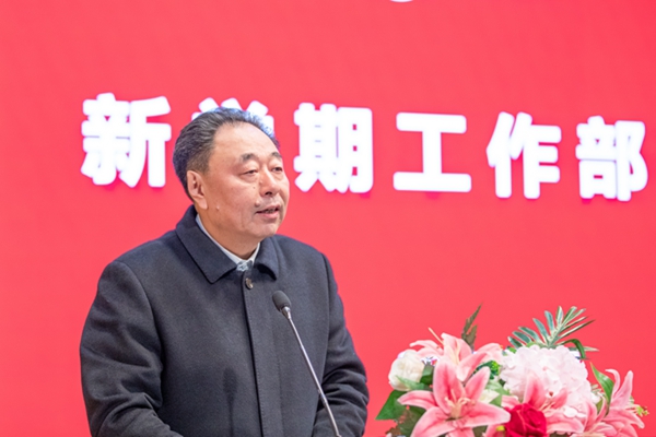 他要求,在新的一年工作中,全体干部教师要把思想和行动统一到学校的总体部署上来,全面审视学校发展面临的困难挑战和战略机遇,始终保持高质量发展的战略定力,以担当致敬使命,以奋斗创造奇迹,努力开创学校高质量发展的新篇章。一是要增强改革创新意识,推动干部敢为、学院敢闯、师生敢干。二是要增强拼搏奋进意识,要敢拼、爱拼、善拼。三是要增强进位争优意识,做到“勤” “快” “严” “实” “精” “细” “廉”。
