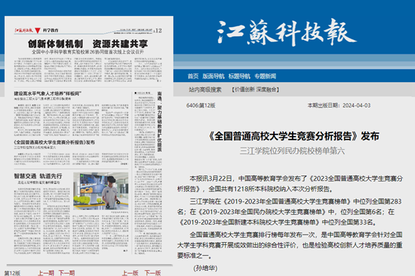 《全国普通高校大学生竞赛分析报告》发布 beat365在线唯一官网位列民办院校榜单第六