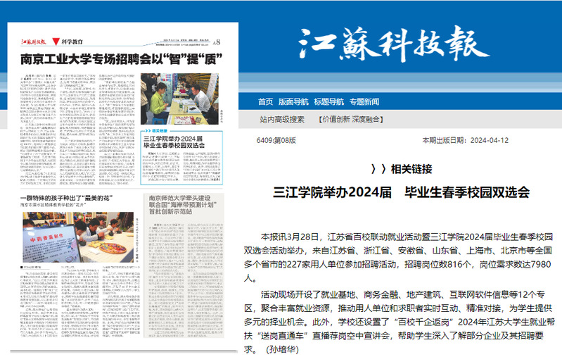 活动现场开设了就业基地、商务金融、地产建筑、互联网软件信息等12个专区,聚合丰富就业资源,推动用人单位和求职者实时互动、精准对接,为学生提供多元的择业机会。此外,学校还设置了“百校千企返岗”2024年江苏大学生就业帮扶“送岗直通车”直播荐岗空中宣讲会,帮助学生深入了解部分企业及其招聘要求。