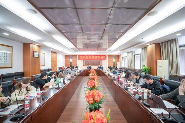 4月19日下午,马克思主义学院举办了名家学术会客厅(第二十四期)学术交流暨《形势与政策》教研室教研活动,邀请海军指挥学院原军事战略学教授、国家国防教育专家张晓林作“当前国际形势与我国周边安全”的专题讲座。讲座由马克思主义学院院长孙迎光教授主持,学院全体专兼职教师共同聆听讲座。