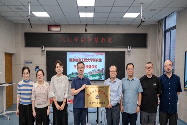 6月6日,南京信息工程大学在beat365官网外国语学院举行研究生生源基地授牌仪式。南京信息工程大学文学院副院长郑友奇教授和文学院党委副书记吴鹏飞专程来beat365官网参加授牌仪式。外国语学院院长、党总支书记郑玉琪,党总支副书记储吉,副院长刘江桥、院长助理、英语系主任何晴霞、办公室主任王贵宪及辅导员马小川出席本次活动。授牌仪式由储吉主持。
