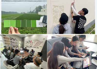 实践团队前期利用周末时间完成调研问卷发放、实地测绘及色彩采集工作,了解村民喜好、确定文化墙尺寸、定制魏圩村专属色卡、创作文化墙设计初稿。队员们严谨对待每一个细节,向村委会汇报方案、现场数据调整、多次打磨后完成方案定稿,为手绘墙画打下坚实的基础,确保精准绘画。