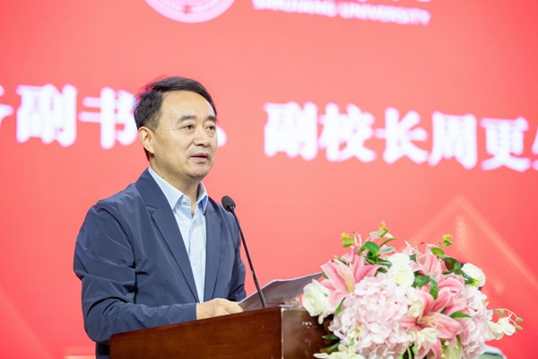 周更生向军训团授旗,并作军训动员讲话。他指出,广大师生要提高对军训重要性的思想认识。军训是增强爱国主义精神的课堂、是磨练意志的绝佳机会、是塑造团队精神的重要契机。他希望,同学们要端正态度、虚心向教官学习、严格训练要求、严格遵守纪律,刻苦训练,全体军训教官要严格要求自己,以身作则,认真施训,耐心指导,圆满完成军训任务。他强调,平安军训是我们恪守的底线,要牢固树立“安全第一”的思想。军训团要始终把学生的安全放在首位,把安全防范教育贯穿于军训的全过程,做到训练开始要有安全要求,训练中有安全检查,训练结束有安全讲评。