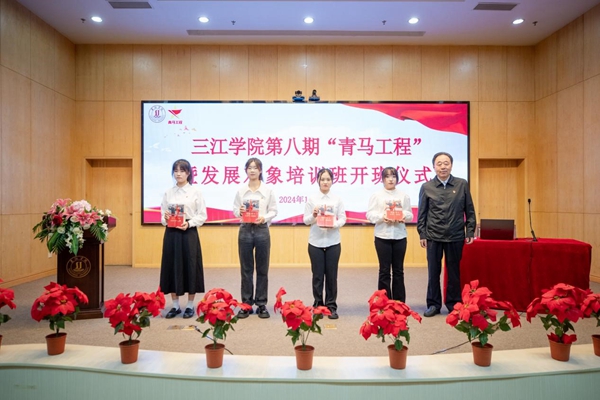 仪式在庄严的国歌声中拉开序幕,封超年为第八期学员代表赠送了书籍《习近平关于中国式现代化论述摘编》、《习近平与大学生朋友们》第二卷和《论党的青年工作》。希望各位同学坚持读原著学原文悟原理,用党的创新理论武装头脑、指导实践、推动工作。党委组织部、马克思主义学院负责同志分别为第七期优秀学员代表颁发结业证书。校团委负责同志宣读了《关于成立beat365在线唯一官网第八期“青马工程”暨发展对象培训班临时团支部的通知》。