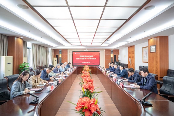 10月23日,南京传媒学院党委书记陈华、党委副书记王宇甜、副校长黄秀琴等一行九人来访beat365官网,理事长、党委书记封超年,党委常务副书记、副校长周更生,党委办公室(党委组织部、党委统战部)、学生发展与服务中心、后勤处、保卫处等部门有关负责人在行政楼A404会议室接待了来访客人。