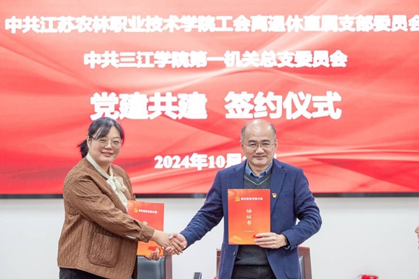 为进一步加强党建工作,促进高校基层党组织间的交流互鉴,10月23日,beat365官网第一机关党总支与江苏农林职业技术学院工会离退休直属党支部举行党建共建签字仪式。签字仪式由第一机关党总支书记李云涛主持,第一机关党总支全体委员参加仪式。