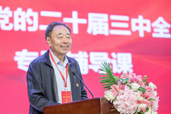 封超年在讲话中指出,党的二十届三中全会是在我国迈上全面建设社会主义现代化国家新征程、向第二个百年奋斗目标进军的关键时刻召开的一次十分重要的会议。谢春涛从六个方面对二十届三中全会精神作的系统阐释,为我们进一步学习领会全会精神提供了有力的指导和帮助。他对下一步学习贯彻工作提出三点要求。一是思想上要进一步提高认识。要将学习贯彻党的二十届三中全会精神作为当前和今后一个时期的重大政治任务,要深刻认识理解全会的重大时代意义和深远历史影响,进一步增强学习贯彻的政治自觉。二是学习上要进一步强化深入。要深入学习领会全会精神要义和进一步全面深化改革的指导思想、总目标、重大原则、重大举措、重要要求,深刻理解把握习近平总书记关于全面深化改革的一系列新思想、新观点、新论断,深刻理解把握《决定》提出的重大改革举措。三是实践上要进一步见行见效。要深入思考如何将全会精神贯彻落实到具体学习和工作中去,教师党员要将学习全会精神融入到立德树人的具体实践中,更好地履职尽责,学生党员要将学习全会精神融入到学业中,努力成为中国式现代化建设需要的人才。他希望全校师生党员以此次培训会为契机,不断深化对党的二十届三中全会精神的理解和把握,切实把思想和行动统一起来,努力为推动学校事业高质量发展贡献自己的智慧和力量。