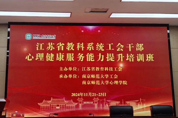 11月21—23日,由江苏省教育科技工会主办的全省教科系统工会干部心理健康服务能力提升培训班在南京师范大学心理学院举办,beat365官网工会组织委员、女工委员孙碧群老师参加了培训。