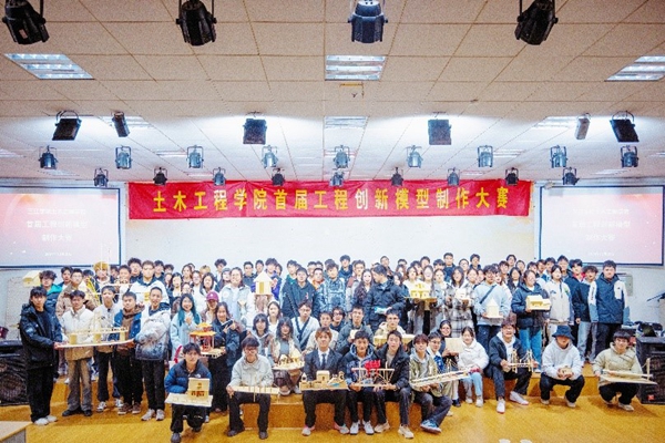 2024级土木工程专业学生组成了37个团队参加了本次大赛,各参赛团队派代表结合工程创新模型与海报,针对设计理念、模型制作思路以及创新点进行作品展示。评委老师对其综合评分,最终评选出特等奖4个,一等奖8个,二等奖12个。《行梦楼阁》以线上投票数第一的成绩获得本次比赛最受欢迎模型奖。