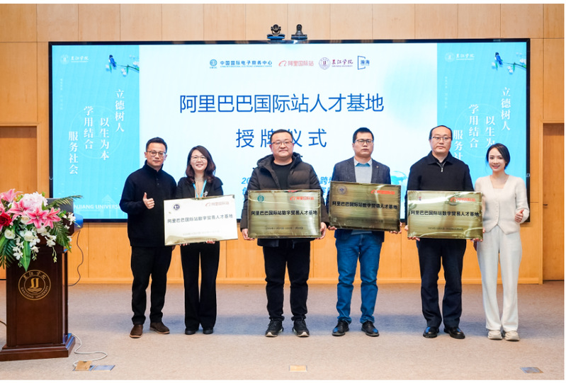 开幕式上还举行了阿里巴巴国际站人才基地授牌仪式。南京师范大学泰州学院、南京理工大学紫金学院、上海师范大学天华学院和常州工学院四所高校被正式授予“阿里巴巴国际站人才基地”牌照。这一举措将进一步推动校企合作、产教融合,为跨境电商行业培养更多高素质、高技能的应用型人才。