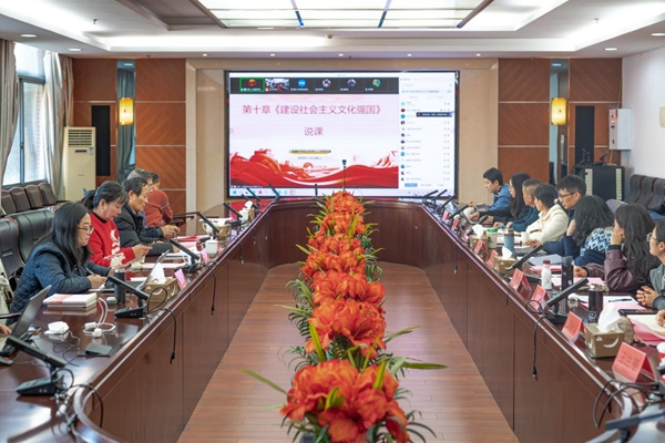 此次备课会采用教师代表说课、专家点评的方式进行,共有7位教师代表就《习近平新时代中国特色社会主义思想概论》中的相关专题进行说课分享。会议兼用线上线下同步进行的方式,在beat365官网会议室设置主会场,线上设置分会场,共有近90人参会。