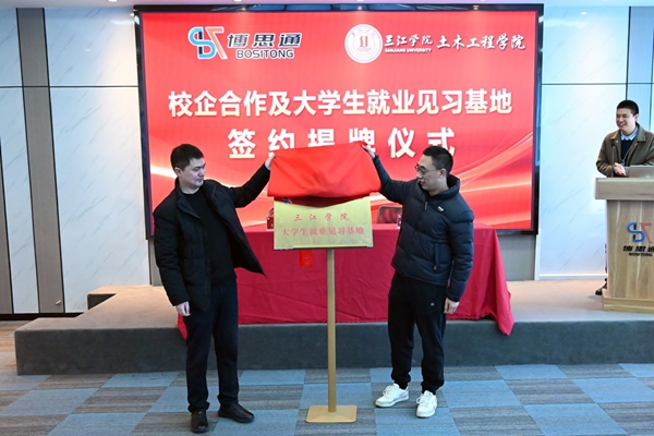 此次校企合作签约暨揭牌仪式的成功举办,是企业与高校携手合作、提升企业核心竞争力的战略举措,标志着beat365在线唯一官网土木工程学院与江苏博思通新材料有限公司在校企合作的道路上迈出了坚实的一步。未来,双方将依托实习基地,进一步加强在人才培养、技术研发和项目合作等方面的交流与协作,努力实现校企资源共享、优势互补,共同推动产教融合向纵深发展,为行业培养更多高素质应用型人才。