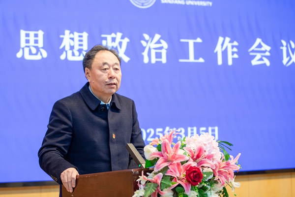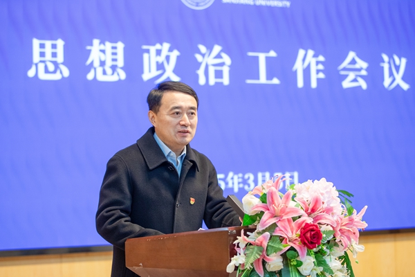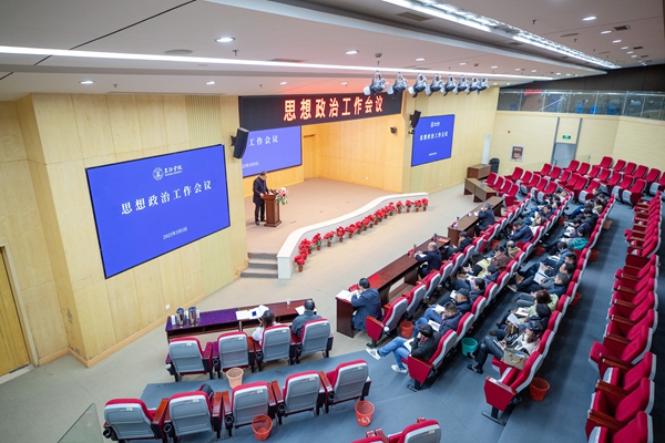 他指出,要认真研判,准确把握学校思想政治工作的总体态势。要清醒认识到大思政工作格局尚未真正形成,思政工作的针对性和有效性需要增强,思政工作队伍的能力水平有待进一步提高,对思政工作的评价需要完善。学校党委要高度重视思想政治工作,紧扣立德树人这一根本任务,把做好师生思想政治工作作为重大政治任务和责任担当,多措并举推动学校思想政治工作加快发展。一是党的领导全面强化。二是理论学习规范有力。三是课程建设持续优化。四是平台载体不断拓展。五是工作队伍稳步增长。六是主流舆论发展壮大。
