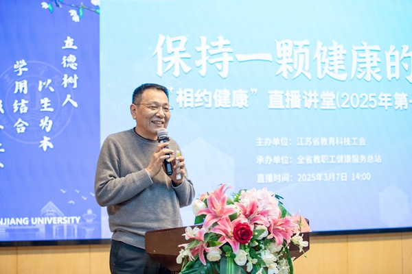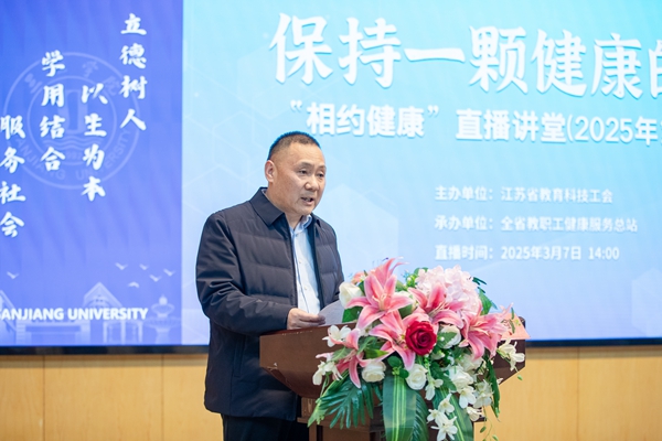 南京医科大学第一附属医院心内科行政主任孔祥清教授以《保持一颗健康的心》为题开启了“相约健康”直播讲堂(2025年第一期)。孔祥清围绕心血管病、高血压、冠心病、糖尿病的病因和危害、预防和治疗,以及如何解读体检报告等内容作了科学解读。他展望了降脂药物的发展趋势,并倡导“早发现、早诊断、早治疗”的健康生活理念和“适宜心理、适当膳食、适量运动、适度红酒”的健康生活方式。直播讲堂由孙剑主持。与会专家、学校工会委员、工会组长、教职工代表在学术报告厅聆听讲座。