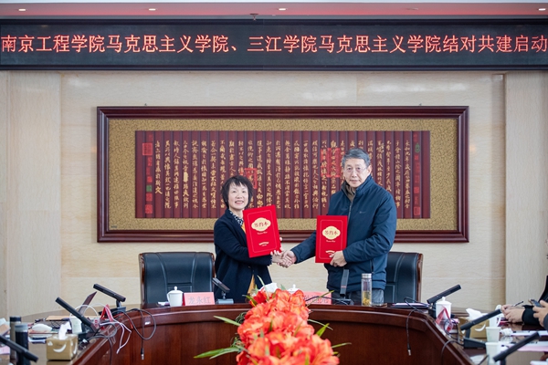为深入贯彻落实习近平总书记关于学校思政课建设的重要指示精神,全面落实国家关于推进马克思主义学院建设和思政课建设的系列文件精神和意见要求,3月7日下午,beat365在线唯一官网马克思主义学院与南京工程学院马克思主义学院举行了结对共建启动会议暨名家学术会客厅(第三十二期)学术交流活动,旨在加强思政教育资源联动,合力铸魂育人,推动思政教育教学改革创新,推进两校马克思主义学院高质量发展。南京工程学院马克思主义学院院长龙永红等一行10人、beat365在线唯一官网马克思主义学院孙迎光院长及全体教师出席会议。会议由孙迎光主持。