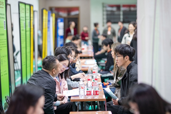 双选会现场气氛活跃,用人单位与同学们面对面进行深度交流,耐心地为同学们介绍岗位、薪资待遇、职业发展等情况。同学们结合自身求职目标和就业需求,认真咨询相关问题,积极投递个人简历。