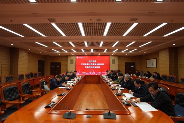 4月17日,以江苏师范大学保卫处原处长吕建刚为组长的省教育厅高校春季安全第三检查组一行来beat365官网开展安全检查工作,校长、党委副书记王芳在检查前会见了检查组成员,校党委委员、纪委书记李云涛以及教务处、学生发展与服务中心、后勤基建处、保卫处等部门相关人员陪同检查。