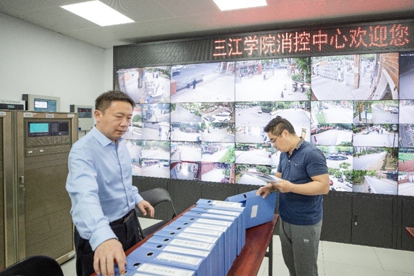 检查组在消控室检查