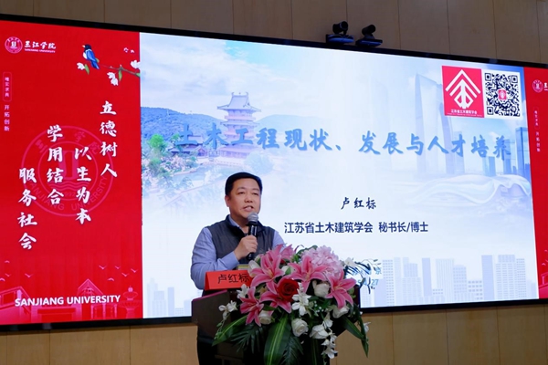 4月27日,土木工程学院联合科研处在学术报告厅举办专题讲座,邀请江苏省土木建筑学会秘书长卢红标就土木工程的历史地位、行业转型发展及人才培养等议题进行了深入讲解。土木工程学院院长胡夏闽主持,200余名师生参加。