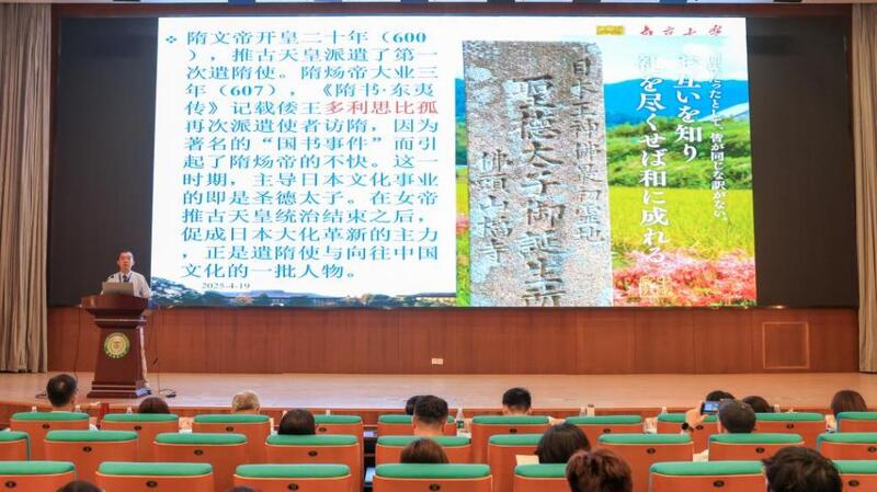 南京大学文学院童岭教授以《日出处天子致书日没处天子——隋代日本“国书事件”探微》为题,剖析了古代中日交流的历史细节和文化传播情况。