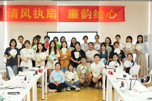 5月19日,文化产业与旅游管理学院党总支、工会小组以传统文化为载体,组织全体师生党员开展“清风执扇,廉韵绘心”主题党建活动,将廉政教育与艺术创作相融合,以“扇”喻“善”、以“莲”寓“廉”,在笔墨丹青中厚植清廉文化根基。校工会主席、纪委委员杨业琴出席活动,院党总支副书记吴明明主持。