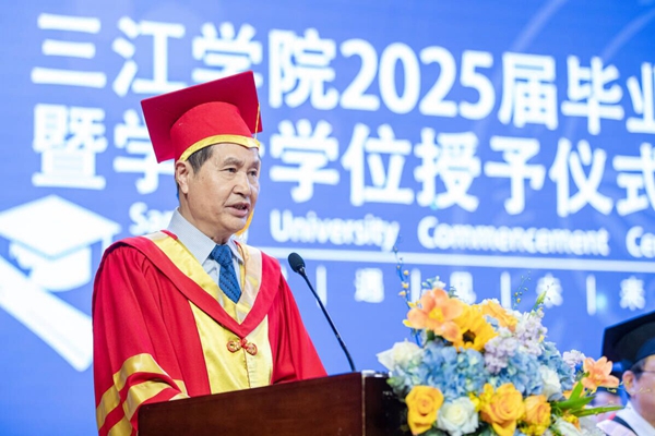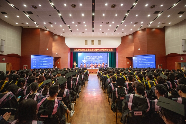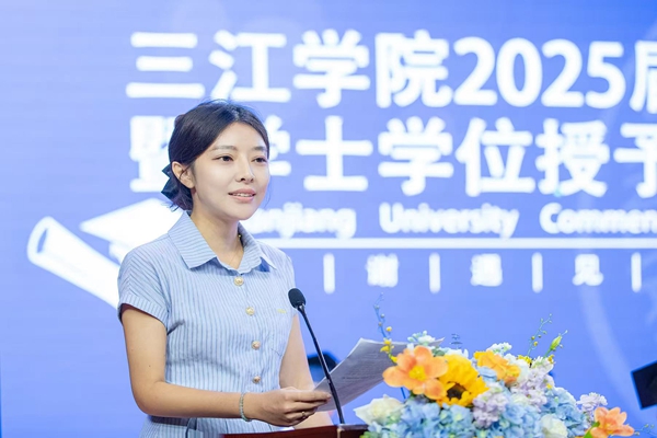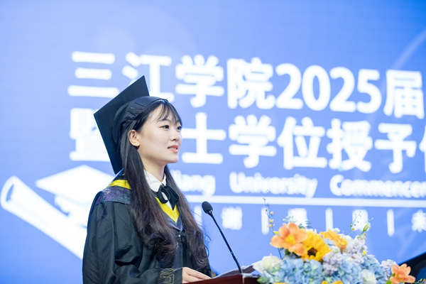 作为毕业生代表,建筑学院风景园林专业2021级B班的齐娜深情讲述了自己难忘的三江记忆,道出了学子们的三江情怀。临别之际,她深情祝愿母校事业蒸蒸日上,再创辉煌,并祝愿全体毕业生所行皆坦途,所遇皆良善,前程似锦,未来可期。