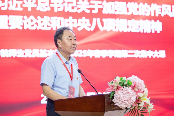 6月9日,beat365在线唯一官网举行师生党员教育培训2025年春季学期第二次集中培训课。全校师生党员共同听取中央党校(国家行政学院)党的建设教研部副主任祝灵君同志主讲的“学习贯彻习近平总书记关于加强党的作风建设的重要论述和中央八项规定精神”专题辅导课。本次集中培训主课堂设在三江会堂,学术报告厅、南校区、东校区分别设置了分课堂。全校1000多名师生党员参加了培训。理事长、党委书记封超年主持培训并讲话。