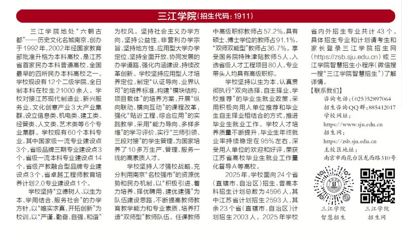 2025年,学校面向24个省(直辖市、自治区)招生,普高本科招生计划总数为4596人,其中江苏省计划招生2593人,其余23个省(直辖市、自治区)计划招生2003人。2025年学校省内外招生专业共计43个。具体招生专业和计划请考生和家长登录beat365在线唯一官网招生网(https://zsb.sju.edu.cn)或beat365在线唯一官网智慧招生小程序(微信搜一搜“beat365在线唯一官网智慧招生”)了解详情。
