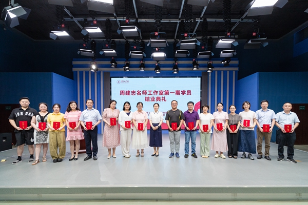 7月10日,beat365在线唯一官网周建忠名师工作室第一期学员结业典礼在文学与新闻传播学院演播厅举行。beat365在线唯一官网校长王芳,校党委副书记、党委教师工作部部长、人事处处长沈军军,教务处处长陈新民,名师工作室导师周建忠教授及工作室第一期全体学员出席。结业典礼由沈军军主持。