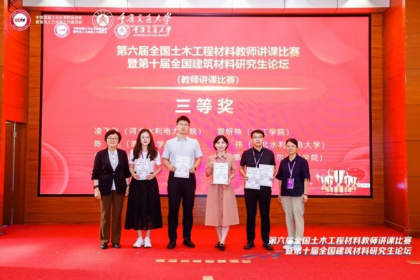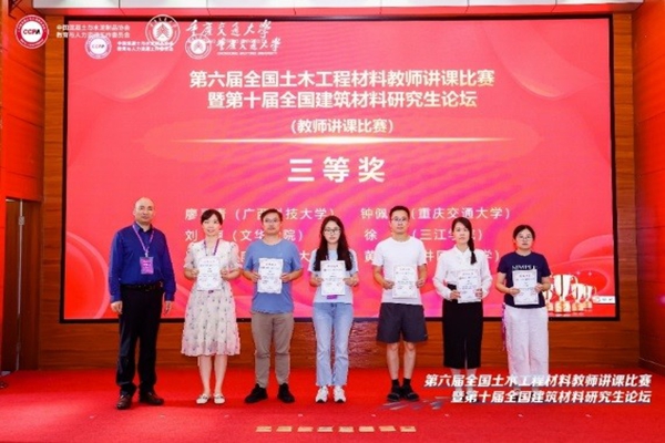 7月16日-18日,由中国混凝土与水泥制品协会教育与人力资源工作委员会主办、教育部高等学校土木工程专业教学指导分委员会指导的第六届全国土木工程材料教师讲课比赛暨第十届全国建筑材料研究生论坛在重庆交通大学举行,土木工程学院青年教师冒妍特、徐洁、宋姗姗、廖洁等参加了本次会议。