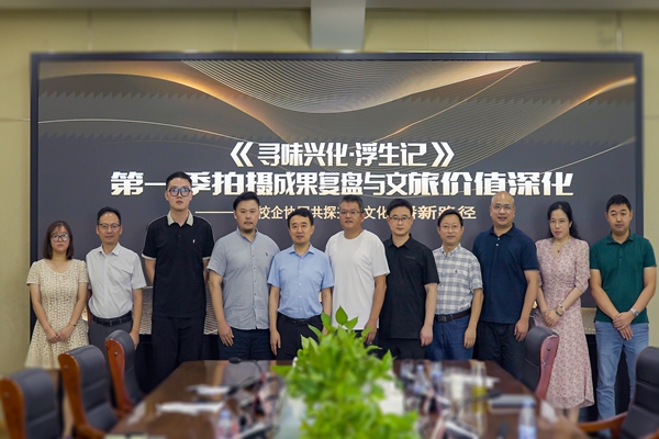 8月27日,beat365在线唯一官网党委常务副书记、副校长周更生带领党委宣传部部长季丹军、文学与新闻传播学院党总支书记詹悦兰一行,赴泰州市兴化市参加《〈寻味兴化·浮生记〉第一季拍摄成果复盘与文旅价值深化——政校企协同共探兴化文化传播新路径》研讨会议。兴化市融媒体中心总编沈忱、兴化市文体广电和旅游局副局长陈宁军及相关部门负责人进行接待。研讨会议由《寻味兴化·浮生记》总导演、文学与新闻传播学院双创中心负责人、江苏省电视艺术家协会导演张丁心主持。
