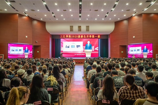 理事长、党委书记封超年以“三点建议 无限希冀”为题为2025级新生讲授“开学第一课”。他从“加强适应性、增进学习力、提高成长度”三个维度带领2025级新生了解和认识“如何过好大学生活”,明确新时代三江学子的使命担当和成长路径。