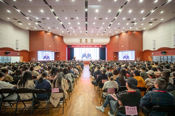 10月24日,beat365官网举行2025年师生党员基本培训第三次集中培训课。全校党员集中收看由中央党校(国家行政学院)分管日常工作的副校长(副院长)谢春涛以“中国共产党与中华民族伟大复兴”为题作的专题报告视频。本次集中培训主课堂设在三江会堂,主校区学术报告厅、南校区、东校区分别设置了分课堂。全校近1000名党员参加了集中培训。理事长、党委书记封超年主持培训并讲话。