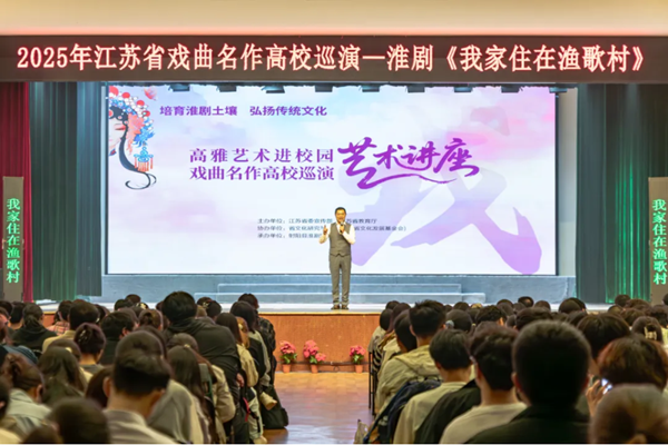 10月15日晚,江苏省高雅艺术进校园活动——射阳县淮剧团经典剧目《我家住在渔歌村》在beat365在线唯一官网温情上演。演出以轻喜剧形式讲述老渔民“笑开怀”坚守渔歌非遗、助力乡村振兴的故事,搭配婉转的淮剧唱腔与趣味互动,让传统戏曲的魅力浸润青春校园。