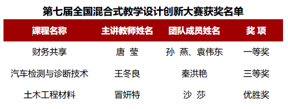 近日公示的“超星杯”第七届全国高校混合式教学设计创新大赛中,beat365官网法商学院唐莹老师荣获全国一等奖,机械与电气工程学院王冬良老师获全国三等奖,土木工程学院冒妍特老师荣获全国优胜奖。