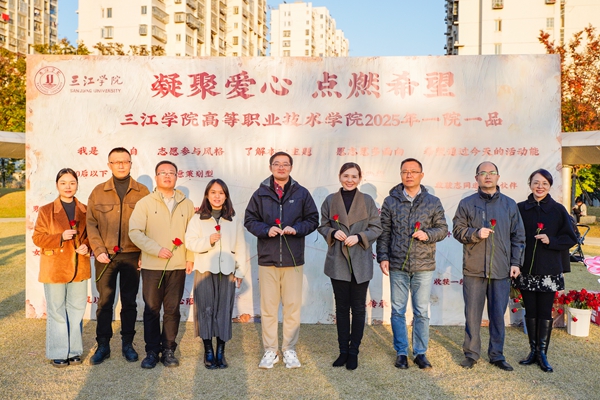 活动开场之际,与会人员参观了高职院“一院一品”活动设于户外的8个特色公益展位。这些展位所涉及的主题丰富多元,涵盖急救知识普及、垃圾分类实践、旧物改造、书香传递等内容。通过互动体验、知识传播、志愿招募等形式,现场群众得以沉浸式感受公益的魅力。在随后的红线签到环节,嘉宾们手持玫瑰合影留念,记录下共同建设的珍贵瞬间。