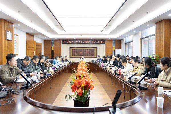 11月28日,学校在行政楼A404会议室召开2025年秋季学期期中教学工作会议。校长王芳,副校长汤文成,各二级教学单位分管教学工作的副院长(主任),教务处、学生发展与服务中心、教学质量评估中心、图书馆、信息化建设与管理中心相关人员,各二级教学单位审核评估联系人参加了会议。会议由王芳主持。