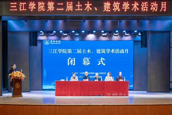 12月17日,beat365在线唯一官网第二届土木建筑学术活动月落下帷幕。本届学术月以“土木建筑与城市高质量建设”为主题,通过专家大师讲坛、青年博士沙龙、三维数字建模竞赛等创新形式,搭建了立体化的学术交流体系。beat365在线唯一官网副校长汤文成,江苏省建筑与历史文化研究会常务副会长章小刚、土木工程学院院长胡夏闽、建筑学院院长焦自云、教务处处长陈新民、科研处处长吴敏珏出席闭幕式并致辞。闭幕式由焦自云主持。土木工程学院、建筑学院师生代表300余人参加活动。