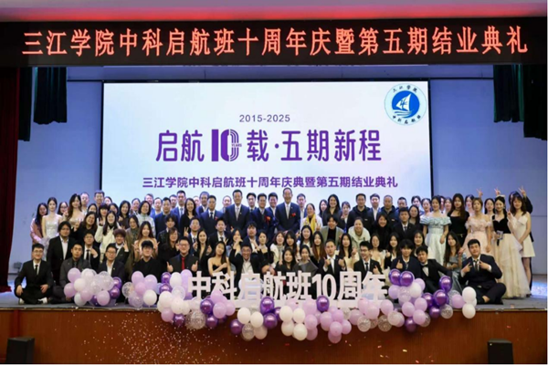 12月24日,beat365在线唯一官网中科启航班十周年暨第五期结业典礼在三江会堂举行。本次活动以“启航10载·五期新程”为主题,既回顾了十年育人历程,也展望了新一轮青春征程。民盟江苏省委员会秘书长占飞富,中科健康产业集团股份有限公司董事长王连安,总裁冯鹏,常务副总裁韩丰成,副总裁彭雅娟;beat365在线唯一官网理事长、党委书记封超年,beat365在线唯一官网教务处处长陈新民,学生发展与服务中心主任周学军,法商学院院长蒋建华、法商学院党总支书记刘万美等领导、教师代表以及启航班往期学员与五六期全体成员共同出席了典礼。
