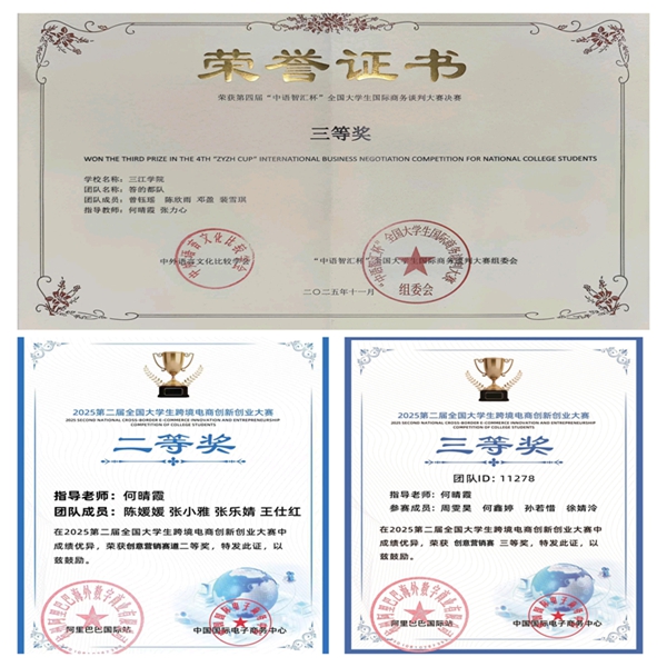 近日,beat365官网英语专业再传喜讯,在第二届全国大学生跨境电商创新创业大赛总决赛中,两支学生团队分别荣获创意营销赛道二等奖和三等奖;在第四届“中语智汇杯”全国大学生国际商务谈判大赛中,斩获全国三等奖。此前,团队还在第十五届全国大学生电子商务“三创赛”直播电商赛道全国总决赛中获得二等奖。这一系列高水平奖项充分彰显了英语专业深化转型、推动“以赛促学、以赛促创、以赛促转”育人模式所取得的扎实成效。