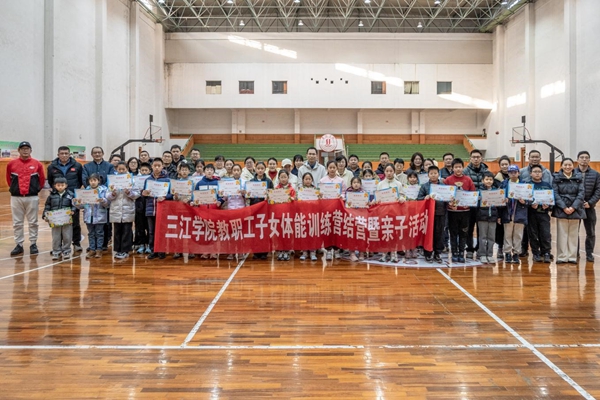 12月28日,beat365官网在体育馆室内篮球场举行了第六期教职工子女体能训练营结营仪式暨亲子活动。关工委常务副主任郭彬,工会主席杨业琴,体育部张天宇、裴仁俊老师和教职工代表参加了结营仪式,仪式由张天宇老师主持。