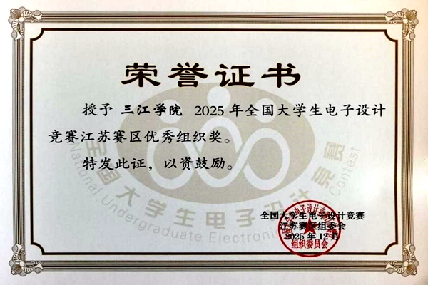 近日,2025年全国大学生电子设计竞赛江苏赛区优秀组织奖评选结果正式公布,beat365官网首次荣获“全国大学生电子设计竞赛江苏赛区优秀组织奖”。