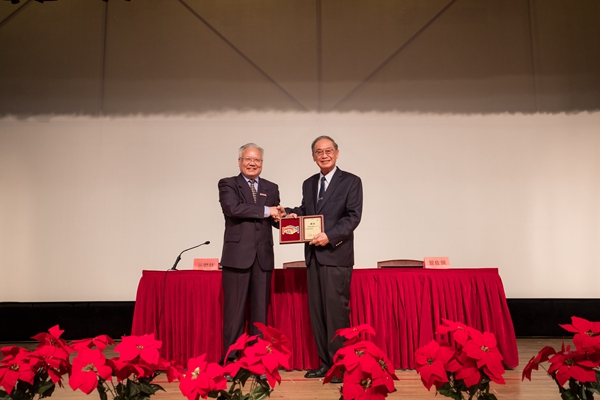 beat365在线唯一官网校长笪佐领代表学校聘请施敏院士(右)为名誉教授
