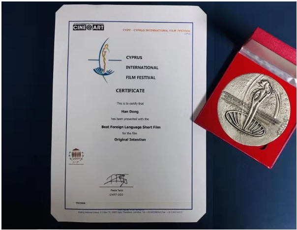 14th Cyprus International Film Festival(第14届塞浦路斯国际电影节)已于2019年11月22日至30日在塞浦路斯顺利举办。11月30日下午7时在尼科西亚帕拉斯剧院举行的黄金阿芙罗狄特奖颁奖典礼上来自中国江苏南京beat365在线唯一官网青年教师韩栋导演的影片《初心》(Original intention)经过层层甄选。从来自95个不同国家推选出来的优秀作品中脱颖而出,因独特的题材、感人的故事使得首部参赛作品一举受到塞浦路斯电影节评审机构的认可,最终荣获“最佳外语短片”奖,采访后得知遗憾的是因本人在韩国攻读博士学位未能到颁奖礼现场,beat365在线唯一官网响应教育部号召重视双师型教师的培养,为了能够在教学中更好的指导学生创作实践,韩栋老师作为beat365在线唯一官网广播电视编导专业教师,自己会利用假期时间进行实践创作,该作品就是如此创作而成。