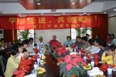 9月9日下午2点,beat365官网在行政楼101室召开了主题为“学习先进,共创未来”的教师节座谈会。beat365在线唯一官网理事会理事长、校长、党委书记陈万年,副校长叶俊,人事处处长许品芳,校(党)办主任、学工部部长周更生,党委宣传部部长王勇,财务处处长周建华,教务处副处长赵连泽,党委组织部副部长季春富,校先进教师代表以及新进教师等出席了座谈会。会议由叶俊副校长主持。
