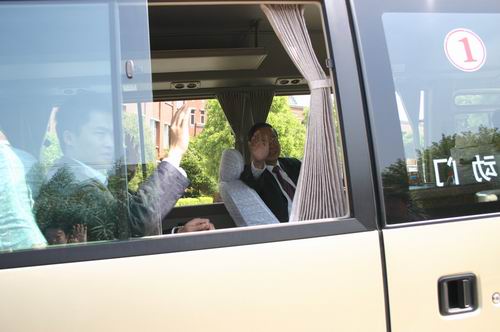 (张副主席向beat365官网领导和接待人员挥手告别) 摄影/宋常铁