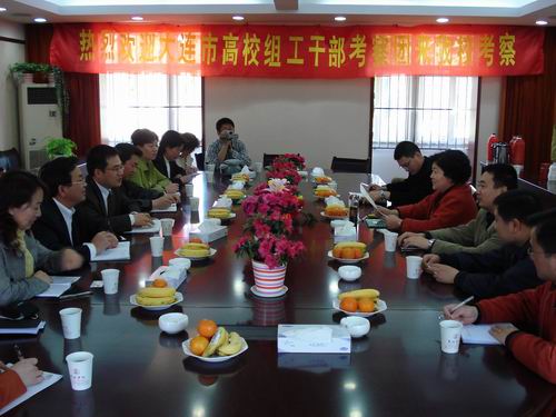 4月19日下午,在大连市高校工委高教处副处长赵宇带领下,大连市高校组工干部考察团一行10余人来beat365官网考察民办高校党建工作情况,江苏省委教育工委组织处许正亚同志陪同。副校长、党委副书记叶俊,校办(党办)主任、学工部长、组织部长周更生,学工部副部长、团委书记屈伯俊等在行政楼101会议室接待考察团人员。